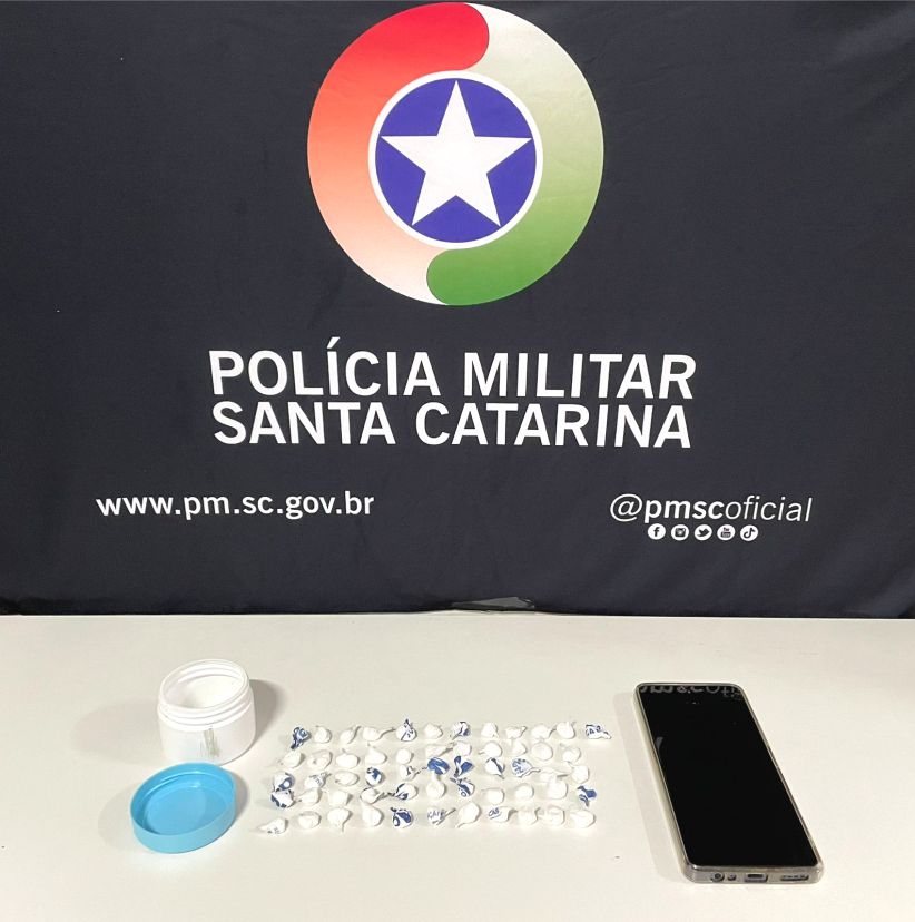 Nada de ilícito foi localizado com os ocupantes, porém, os policiais localizaram um invólucro próximo ao veículo contendo 56 embalagens de cocaína, totalizando cerca de 23g da droga.