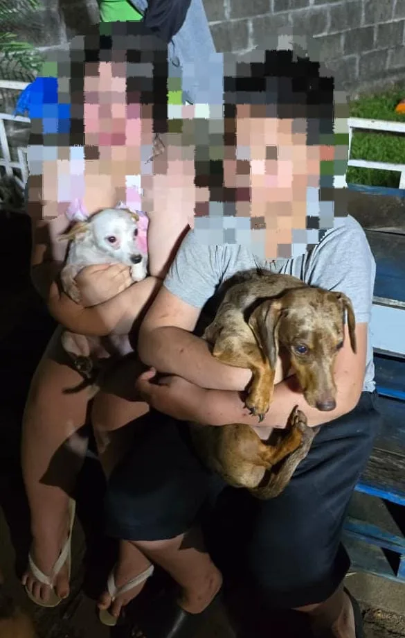 Durante o atendimento, os moradores informaram que havia animais dentro da casa. As equipes iniciaram buscas e conseguiram localizar dois cães adultos com vida e sem ferimentos, sendo um encontrado em meio aos escombros e outro no quintal da residência. Quatro filhotes também estavam no imóvel.