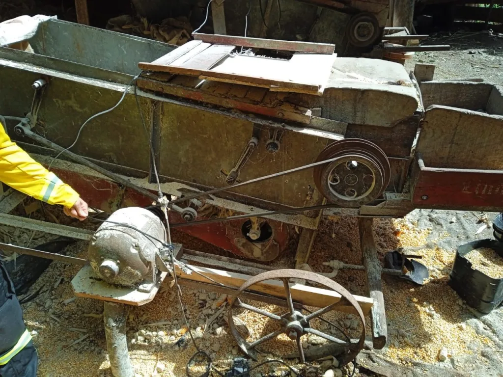 Segundo relato da esposa, o homem realizava a atividade de debulhar milho em uma trilhadeira quando, ao tocar em uma parte metálica do equipamento, sofreu a descarga elétrica. A guarnição constatou a presença de um fio desencapado em contato direto com a máquina, o que pode ter causado o acidente.