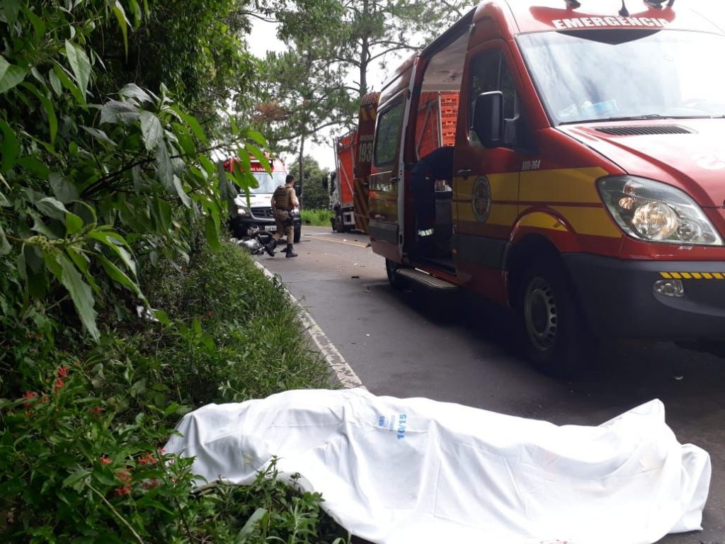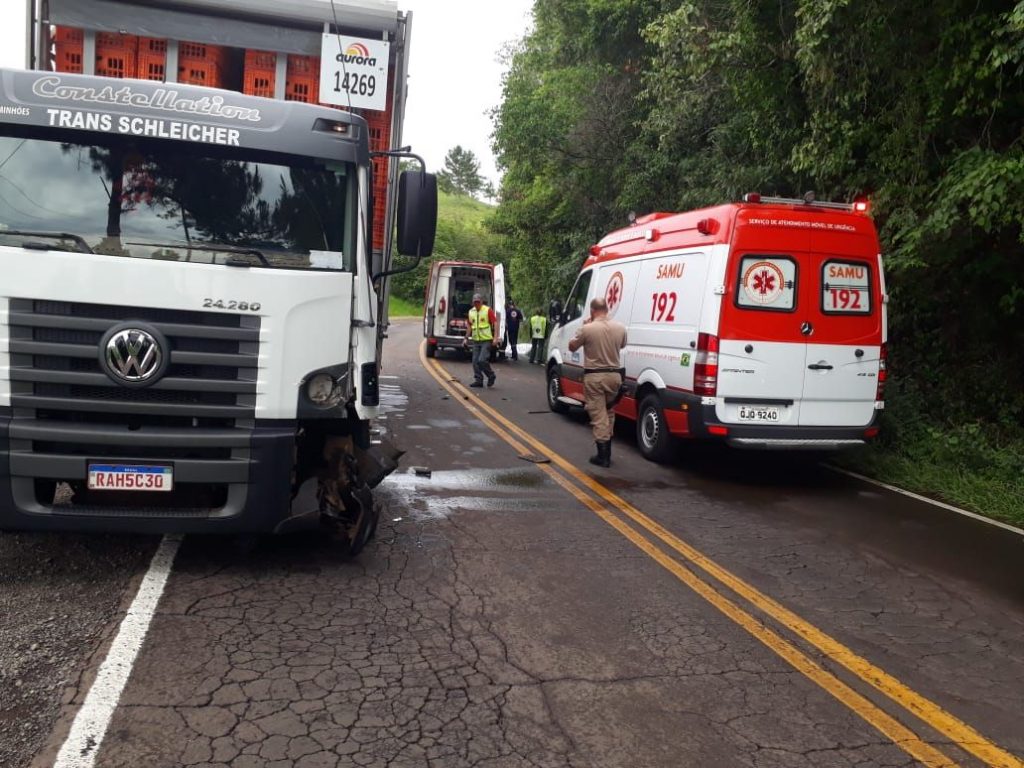 Na colisão o motociclista, um masculino de 37 anos foi a óbito no local. O motorista do caminhão não teve ferimentos.