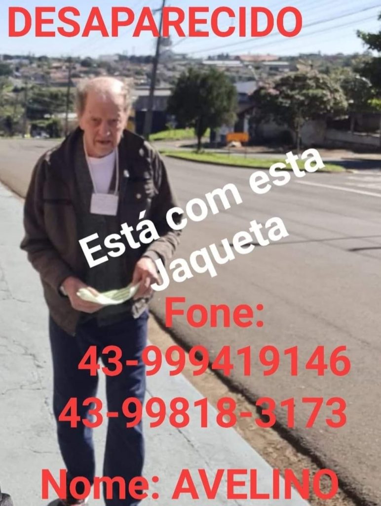 Quem tiver informações sobre o paradeiro de seu Avelino Benetti, pode entrar em contato com a Belos FM ou pelos telefones (43) 9 9941-9146 ou (43) 9 9918-3173.
