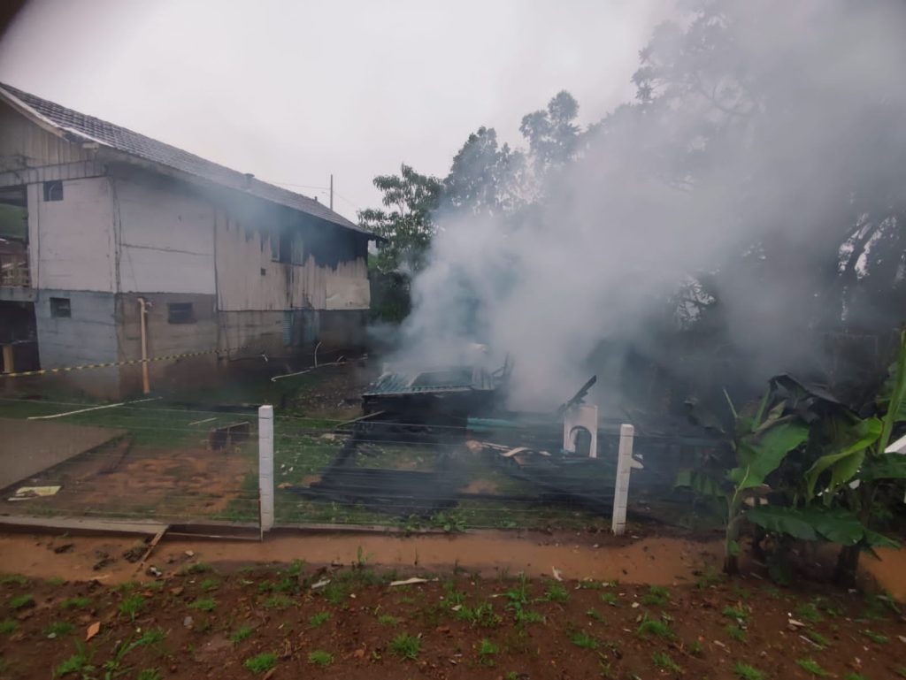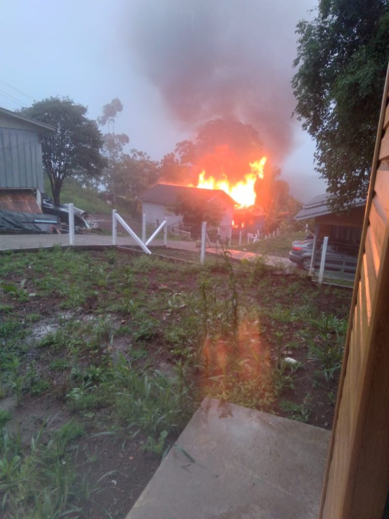 Uma casa foi atingida por um incêndio no início da manhã desta sexta-feira, dia 03, no município de Itá.