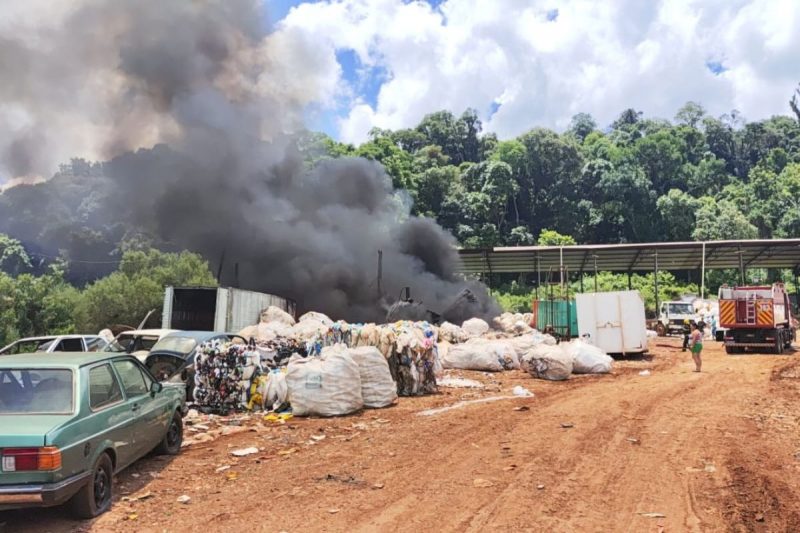 Incêndio destrói barracão de associação de materiais recicláveis em Chapecó