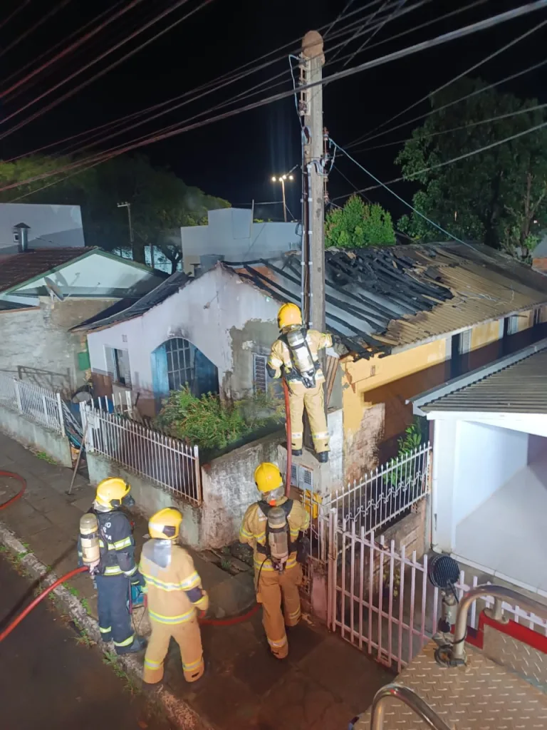Incêndio destrói residência e deixa homem ferido durante a madrugada em Xanxerê