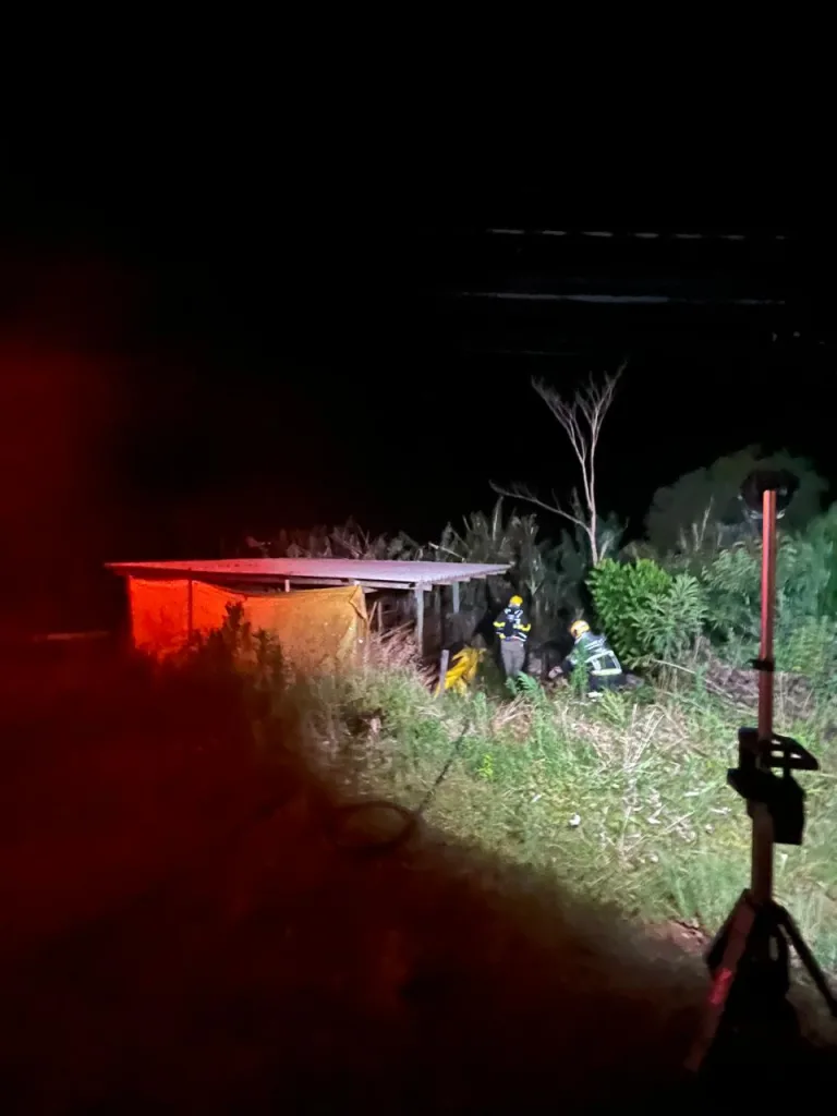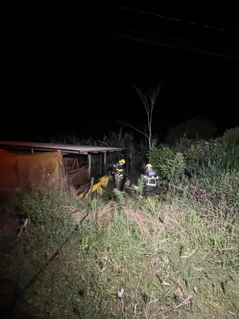 Os bombeiros fizeram o rescaldo, apagando brasas remanescentes e molhando a madeira para evitar a reignição do fogo. Ao todo, foram utilizados 1.000 litros de água na operação. Não havia energia elétrica no depósito, e a causa provável do incêndio foi atribuída à ação humana direta.