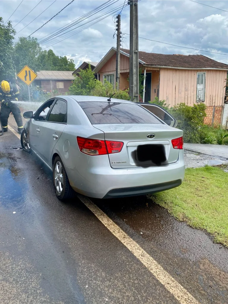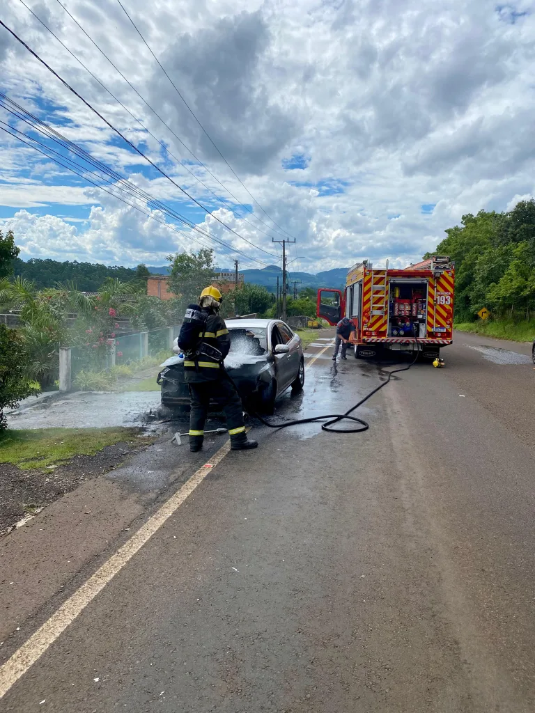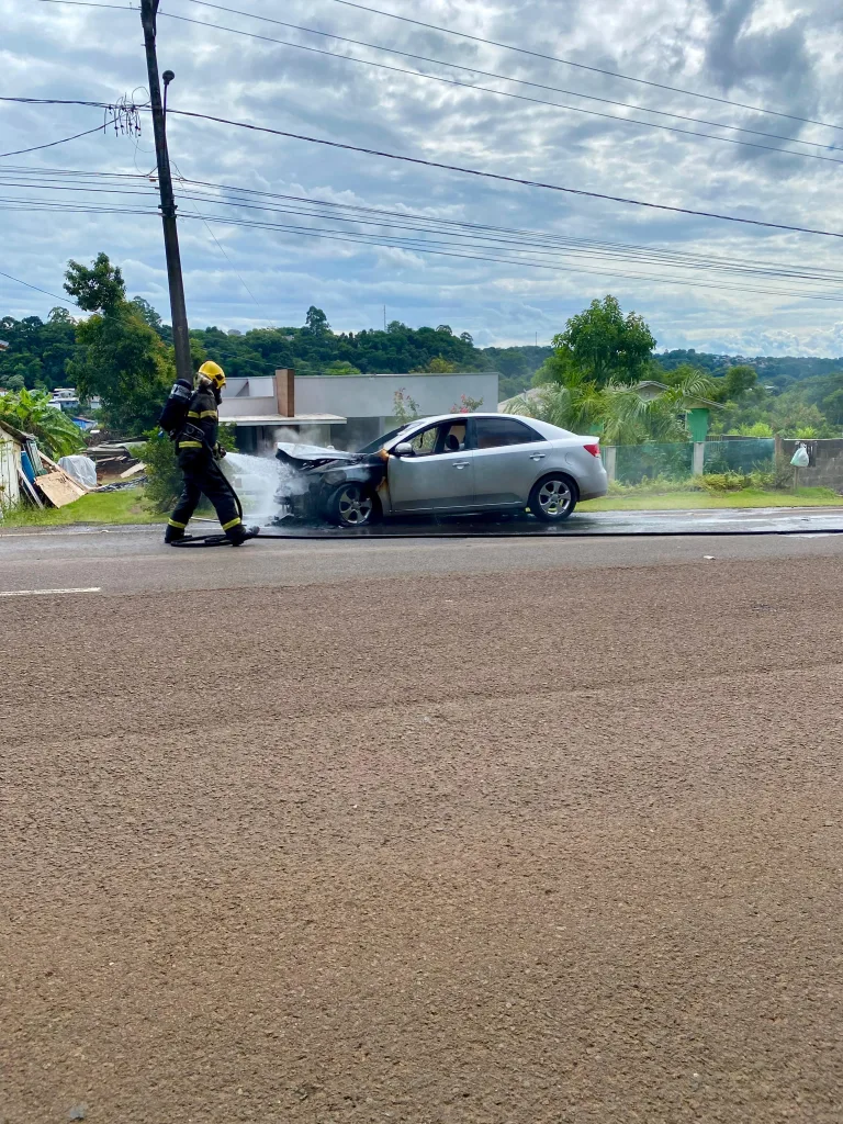 A ocorrência foi atendida pelos bombeiros de Itá por volta das 15h. No local, a guarnição constatou que um veículo Kia/Cerato, de cor prata, encontrava-se tomado pelas chamas, às margens da via.