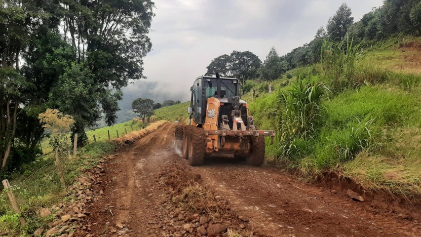 Uma das equipes de máquinas da Prefeitura de Seara e Secretaria de Obras iniciaram nesta quinta-feira, 18, o patrolamento da estrada que liga São Rafael até Linha Santa Lúcia passando pela granja do Niki.