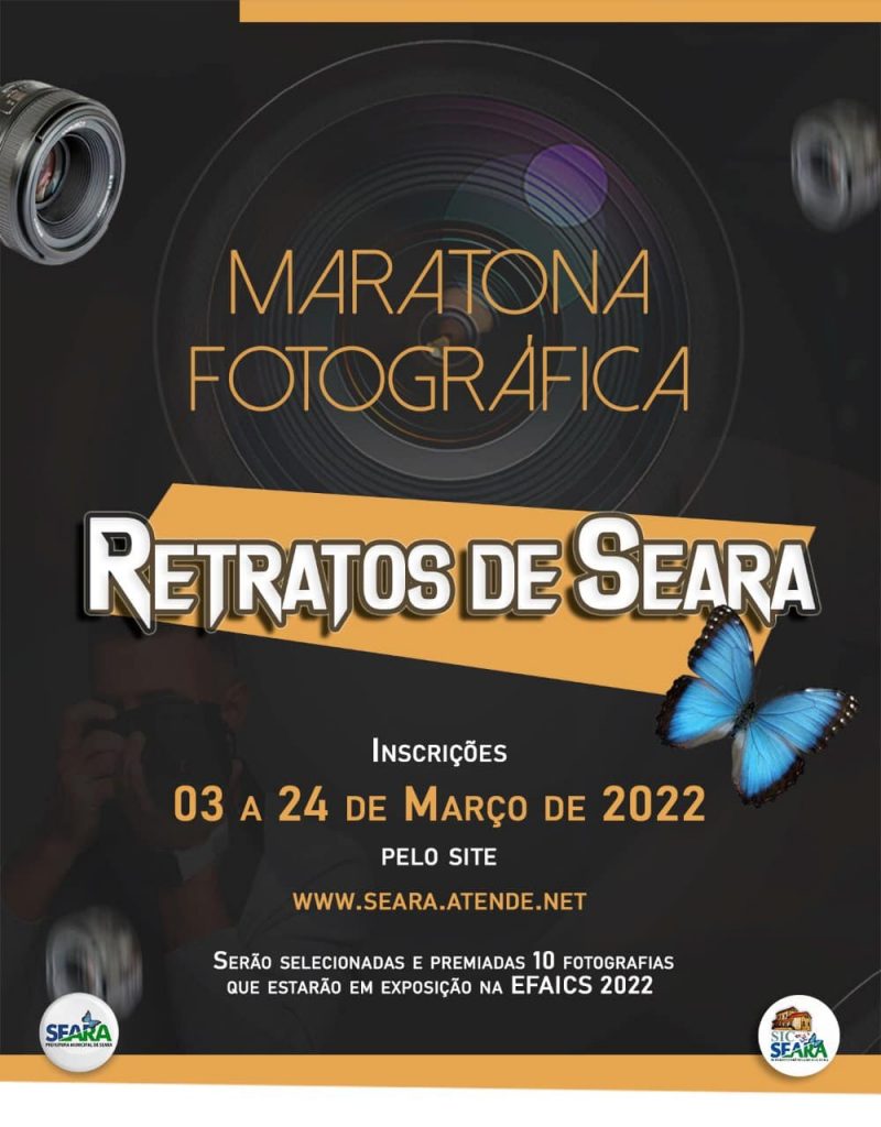 As inscrições para a Maratona Fotográfica “Retratos de Seara” encerram nesta quinta-feira, dia 24. Para participar, basta acessar este link, que contém o regulamento e inscrições.