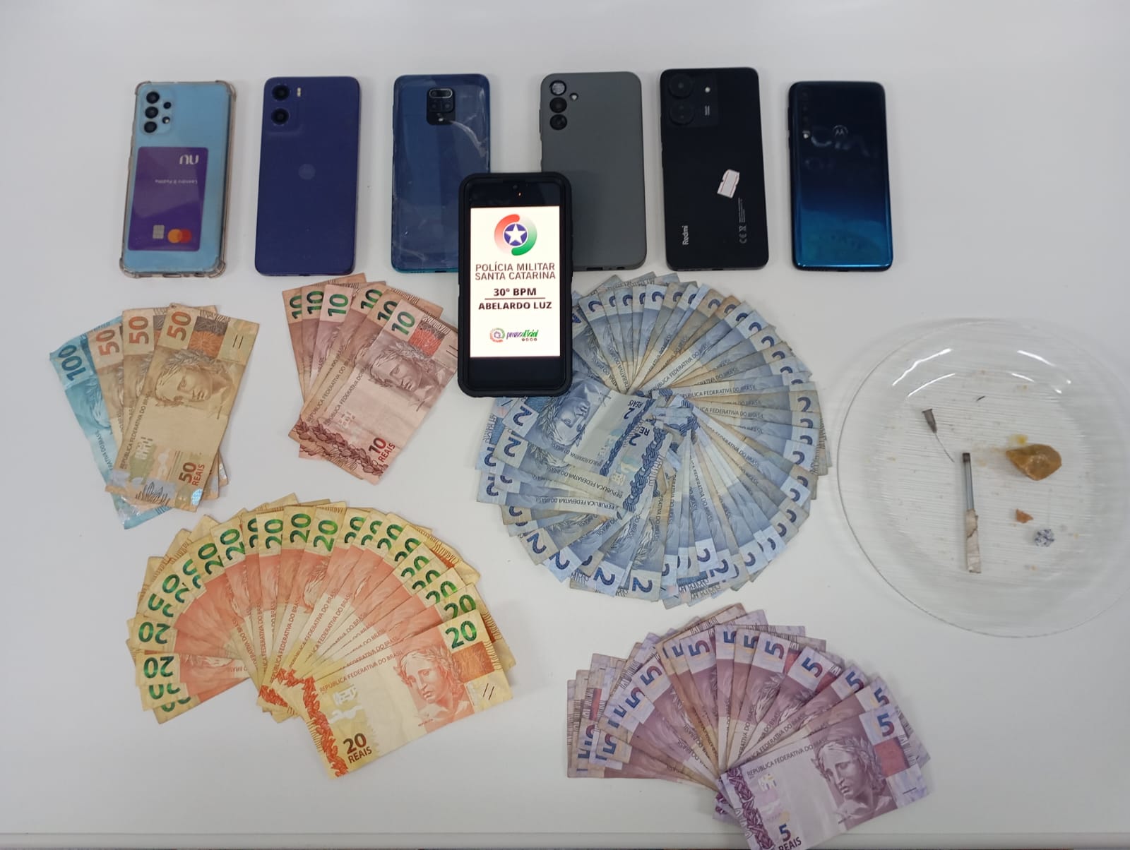 Na sequência, a guarnição se deslocou até a casa do suspeito, onde visualizou outro homem, de 27 anos, arremessando entorpecentes pela janela do imóvel ao perceber a presença policial. Em buscas, foram apreendidos cerca de 9 gramas de crack, aproximadamente R$ 900,00 em dinheiro e diversos aparelhos celulares.