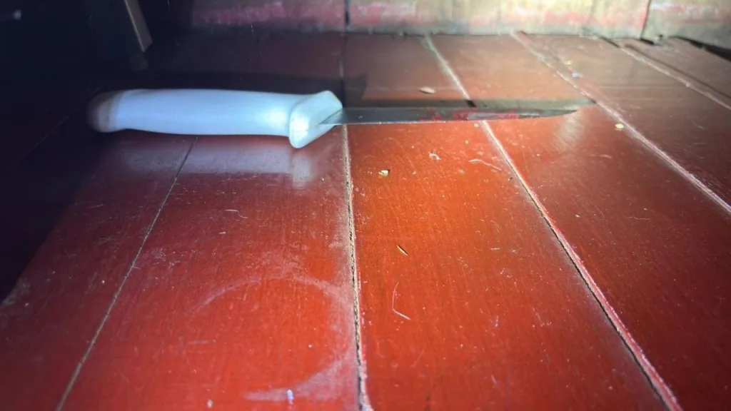 Durante as diligências, os policiais localizaram uma faca possivelmente utilizada no crime no interior da residência onde, em tese, teria ocorrido a agressão. O objeto foi preservado para análise pericial, mantendo-se a integridade da cena para os trabalhos da Polícia Científica de Santa Catarina.