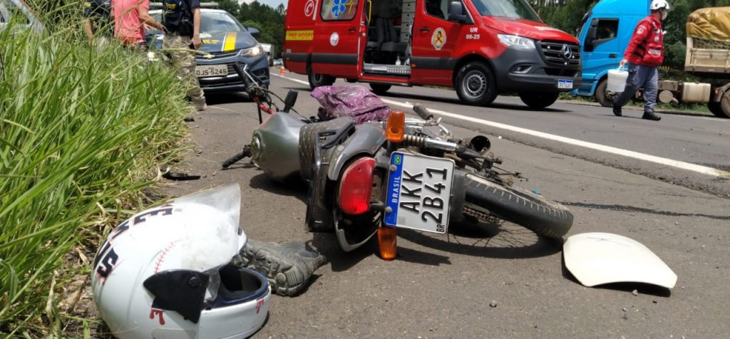 Um jovem de 22 anos ficou gravemente ferido num acidente entre caminhão, placas de Concórdia e moto, placas do Mercosul, na BR-153 em Concórdia. O fato ocorreu na tarde desta quinta-feira, 10. Conforme a Rádio Aliança, a vítima apresentava traumatismo de tórax, crânio e fratura em uma perna. Ele foi levado para o Hospital São Francisco.