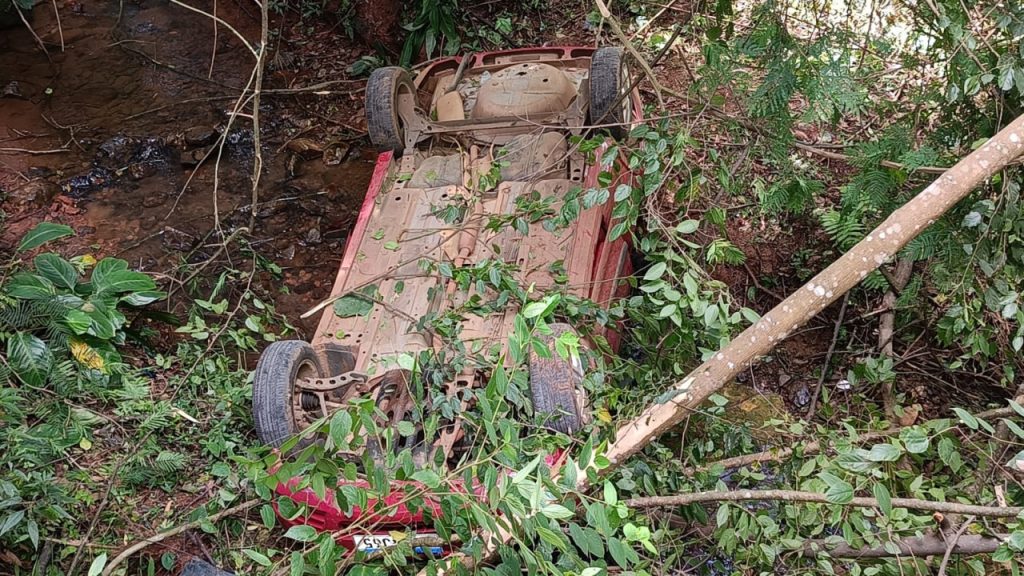 O acidente ocorreu por volta das 13h30, na Travessa Luis Morelatto, próximo à antiga sede do Caça Cachaça. De acordo com informações, o condutor do veículo perdeu o controle da direção, derrapou em uma curva em estrada de terra e caiu em um córrego às margens da via que dá acesso ao Bairro Santa Cruz.