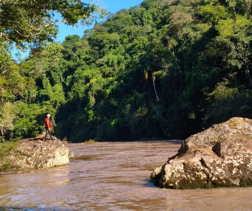 De acordo com os socorristas, a correnteza do Rio Chapecozinho é forte e a mata ciliar apresenta elevada densidade, fatores que dificultam significativamente as buscas.