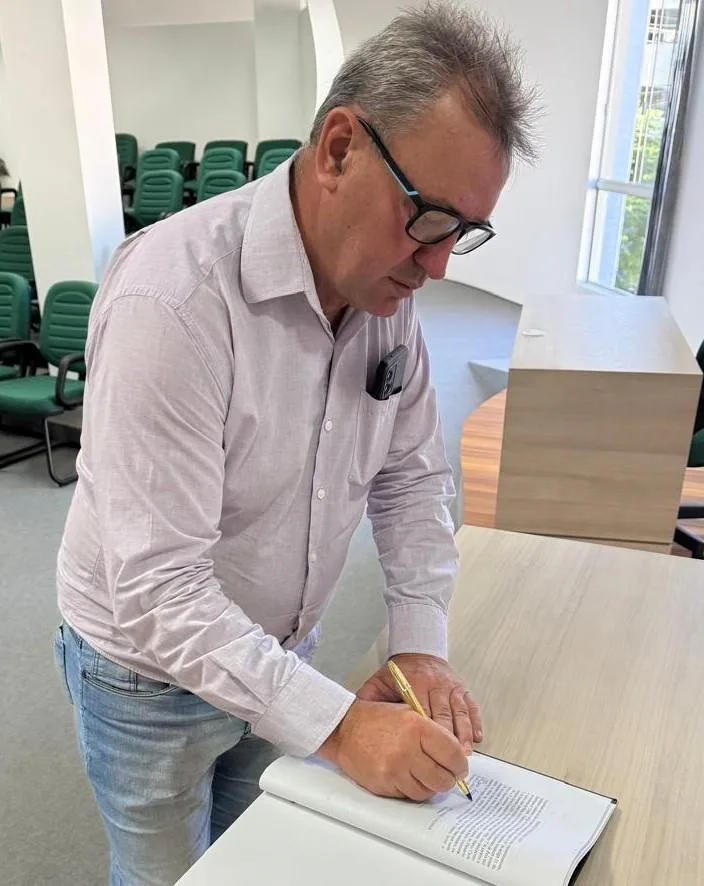 No início da manhã desta segunda-feira, 5 de janeiro, foi realizada a assinatura do Termo de Posse da Mesa Diretora da Câmara para a sessão Legislativa de 2026.