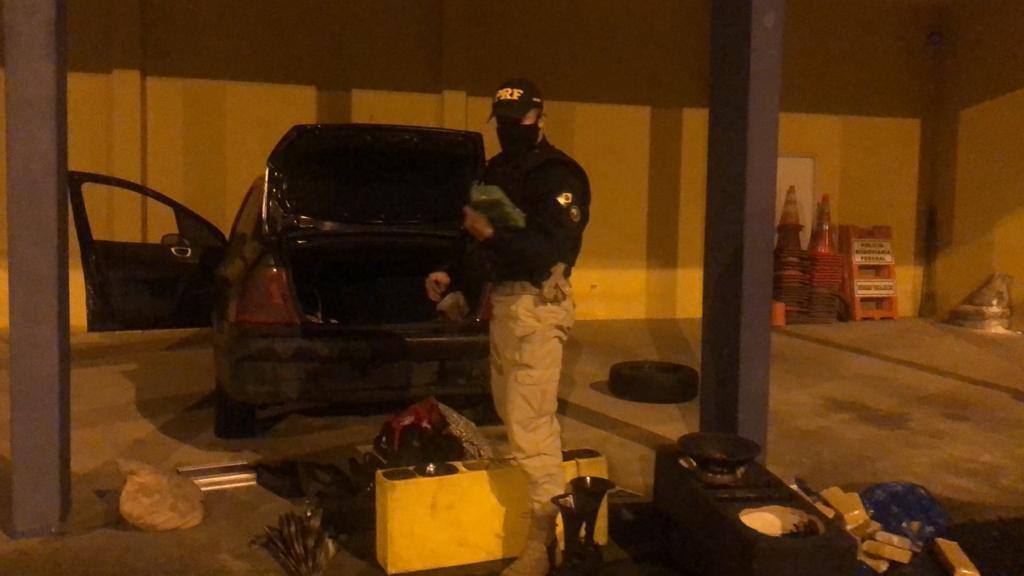 A Polícia Rodoviária Federal estava realizando fiscalização de combate ao crime quando abordou um Peugeot 307, cor preta, placas de Concórdia.