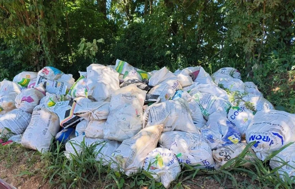 Conforme os moradores, o lixo está na encruzilhada de acesso a linha São Braz. Os moradores foram orientados a depositarem o material no local na semana passada, mas ainda não foi recolhido.