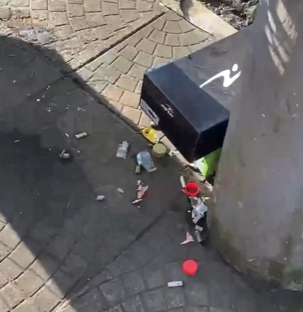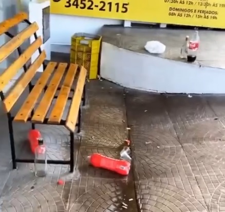 Conforme o relato, pela manhã há sempre garrafas, litros e bitucas de cigarros jogados no chão, na frente dos estabelecimentos comerciais. Mesmo com lixeiras próximas, o lixo é deixado na rua.