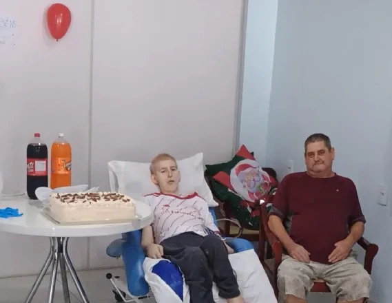 Douglas completou 19 anos de vida enquanto permanece internado desde o início do ano passado. Ao seu lado, seu pai, Dilmar, também comemorou mais um ano de vida durante o período em que está hospitalizado para reabilitação após um Acidente Vascular Cerebral (AVC). Vivendo juntos um momento delicado, a família recebeu uma homenagem preparada pela equipe do hospital, simbolizando carinho, empatia e proximidade.