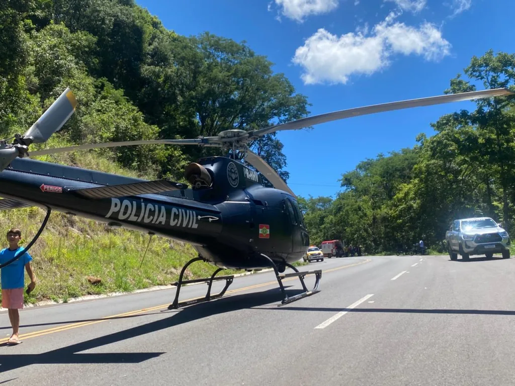 A aeronave da Polícia Civil, tripulada por policiais do SAER–Fron e pela equipe do SAMU/Aeromédico, foi acionada para atendimento primário da ocorrência. O condutor da camionete, um homem, não sofreu ferimentos.