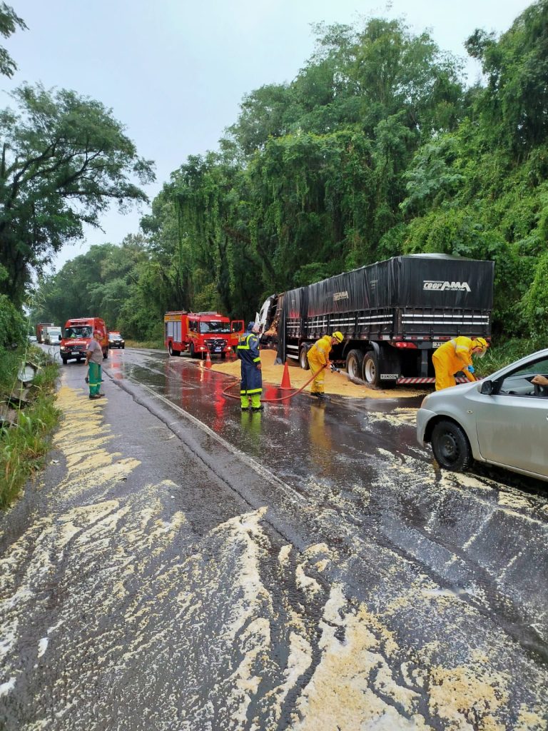 Foram realizadas a sinalização e limpeza da rodovia. Após, a cena ficou aos cuidados da PRF.