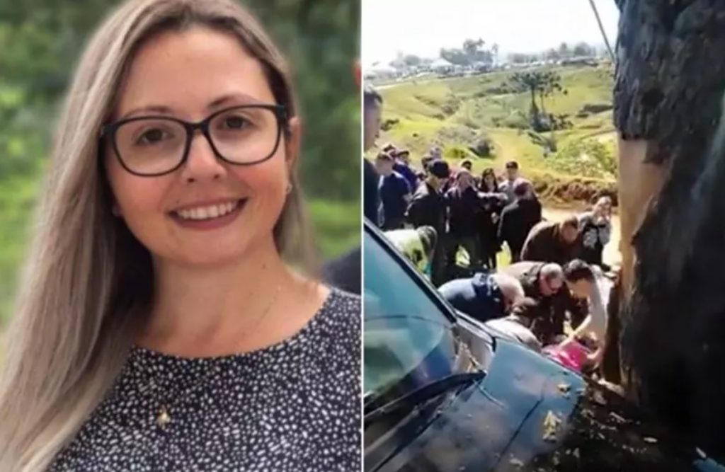 A professora Cristiane Fiório assistia à corrida com o esposo Carlos Maciel quando foi atingida na cabeça por um pneu que se soltou. O casal estava sentado em um barranco cerca de 4 metros acima da pista.