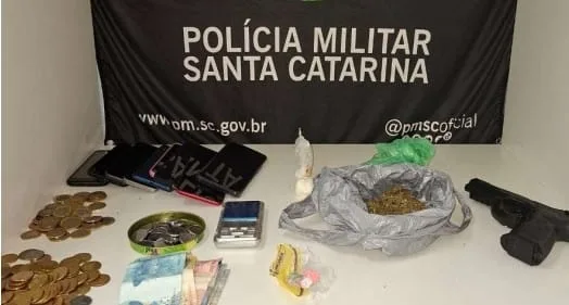 Durante a ação, os policiais encontraram 11,1 gramas de cocaína já fracionadas para venda, cinco comprimidos de ecstasy, 171 gramas de maconha, uma balança de precisão, uma arma de ar comprimido, nove celulares e R$ 262,25 em dinheiro.