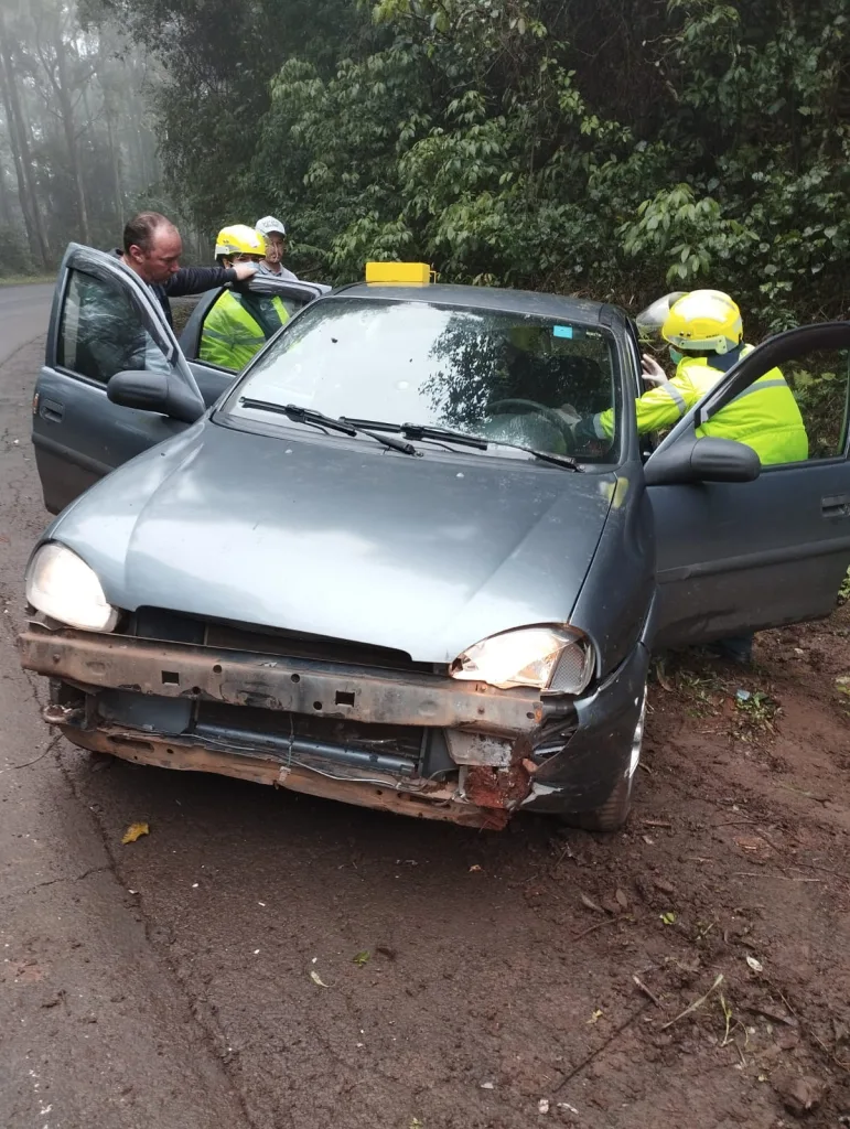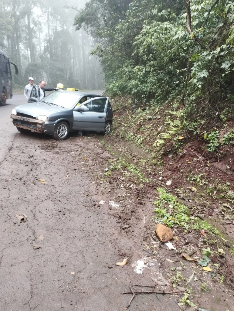 O veículo envolvido foi um GM/Corsa que perdeu o controle, rodou na pista e colidiu com o barranco.