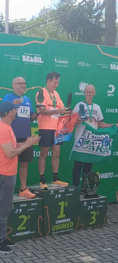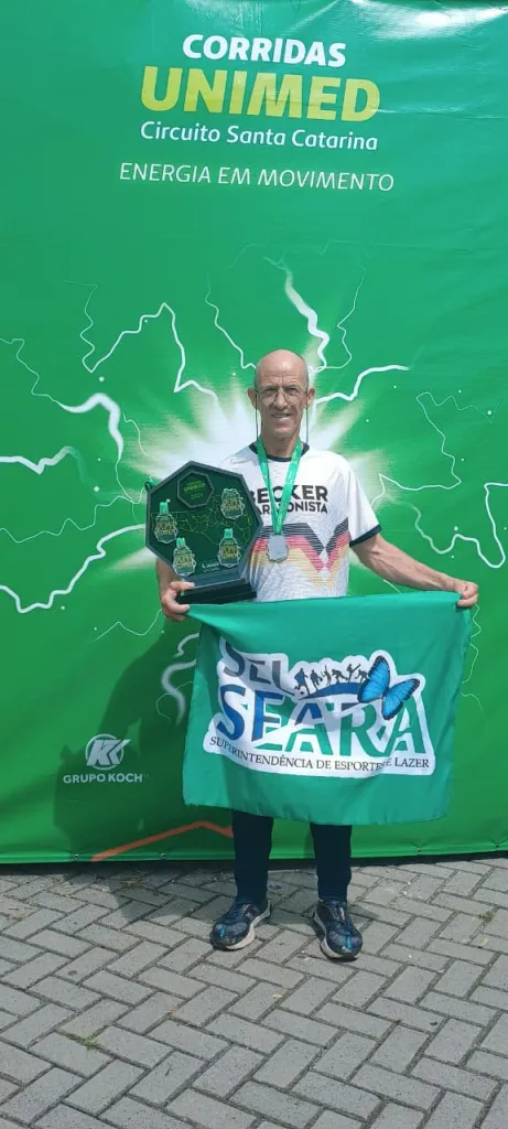 O maratonista searaense Neudi Becker ficou em 3º lugar na categoria 5 km em sua faixa etária na Corrida Unimed, realizada neste domingo em Lages. A prova iniciou às 7h30 e reuniu diversos competidores em diferentes categorias. Todos os atletas que completaram a prova receberam medalha de participação.