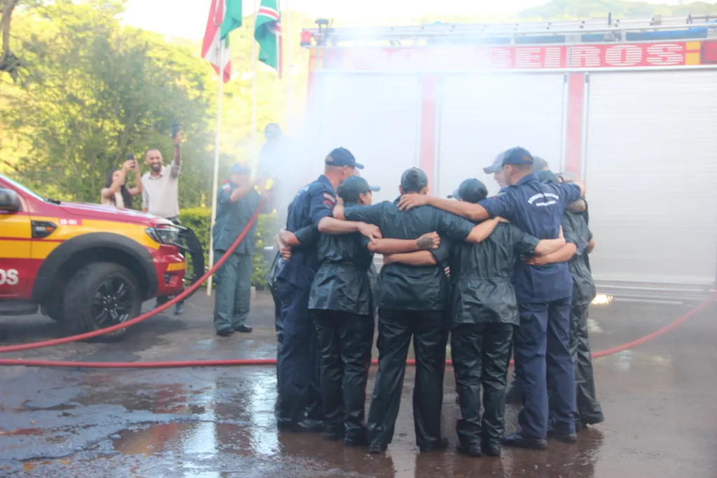 Também na oportunidade foram realizadas homenagens e ao final o tradicional banho aos novos bombeiros.