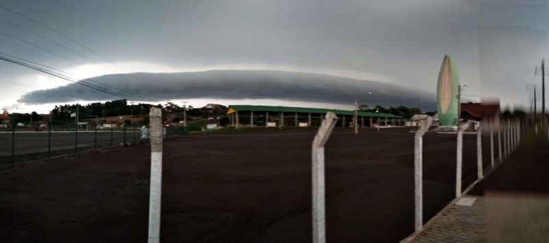 Uma nuvem imensa conhecida pelos meteorologistas como “shelf cloud”, na tradução, nuvem prateleira, foi fotografada nesta manhã de quinta-feira, 30, no Centro Integrado de Gestão de Riscos da Defesa Civil, no bairro La Salle, em Xanxerê.