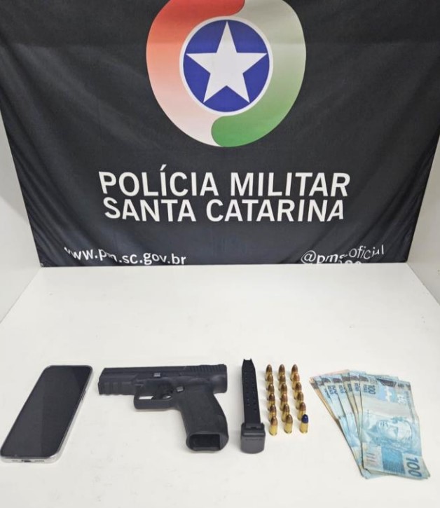 Após um trabalho minucioso de varredura dos policiais, nas proximidades onde o veículo transitou, foram localizados uma pistola de origem turca com numeração suprimida e um carregador contendo 15 munições de calibre .9mm. Foi acionado o Canil de Concórdia para dirimir as dúvidas de outras possíveis substâncias ilícitas no local com o uso do cão de faro, o qual não localizou outros indícios de crime.