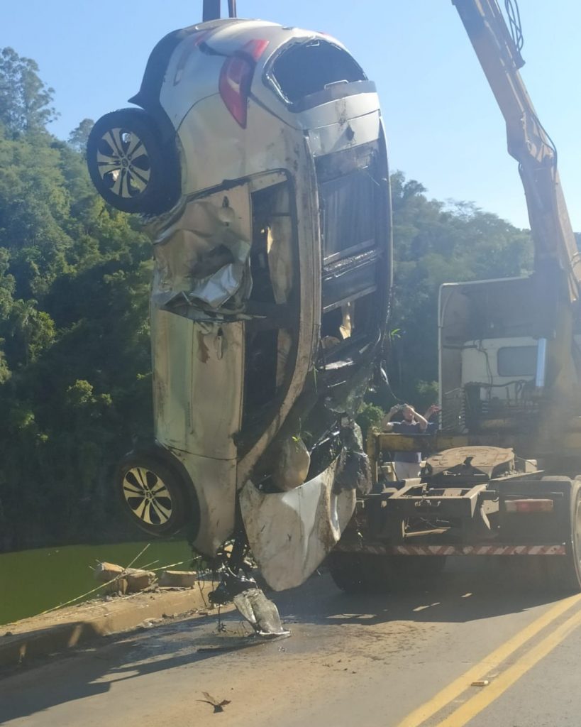 A guarnição da Polícia Militar Rodoviária de Chapecó prestou auxilio na remoção de veículo que se encontrava submerso no Rio Irani, na altura do KM 76,400 da SC-283, no município de Arvoredo, que faz divisa com Chapecó.