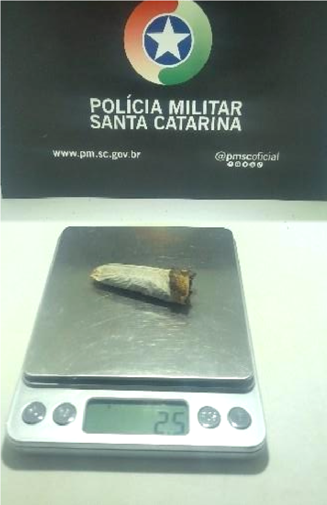 Ao realizar a abordagem e varredura no local, foi localizado um cigarro com cerca de 2,5g de maconha. A droga foi apreendida e lavrado o boletim de ocorrência para o condutor de 32 anos.