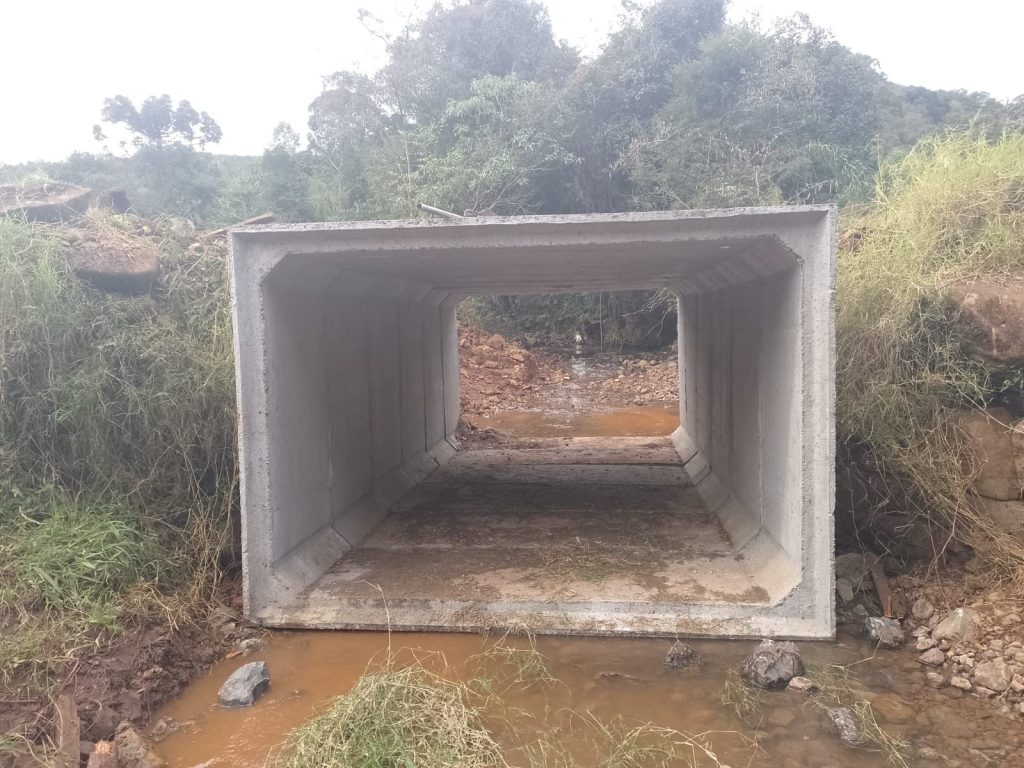 Além desta ponte em galerias, já foram instaladas uma em Linha Sede Floresta, uma em Linha Taquarimbó e outra em Nova Teutônia. O investimento total, somente em galerias, é de R$ 128.880,00.