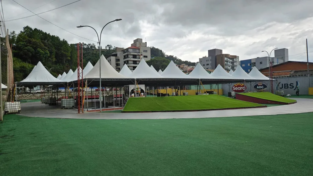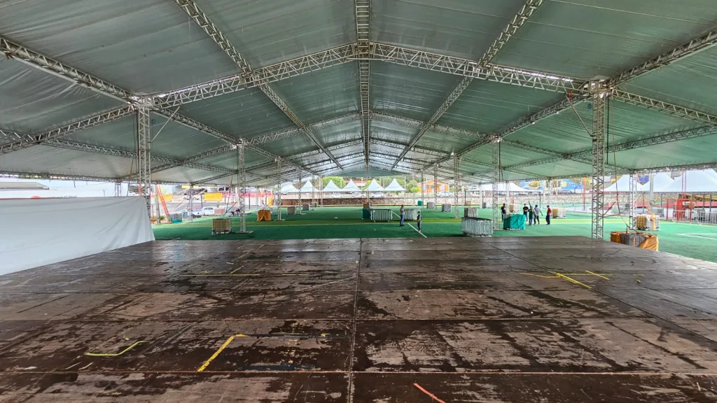 A arena de shows já está praticamente pronta. Na praça de alimentação, os espaços estão sendo organizados para receber as diversas opções de lanches, comidas e bebidas. Já nos pavilhões e áreas externas, seguem os trabalhos de montagem dos estandes dos expositores, que em breve estarão prontos para apresentar produtos, serviços e novidades ao público.