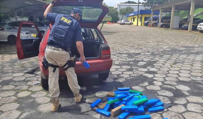 Policiais rodoviários federais apreenderam, na segunda-feira, dia 04, na BR 480 em Chapecó, cerca de 50 quilos de maconha em um automóvel. A droga estava em um Golf placas de Ciríaco/RS.