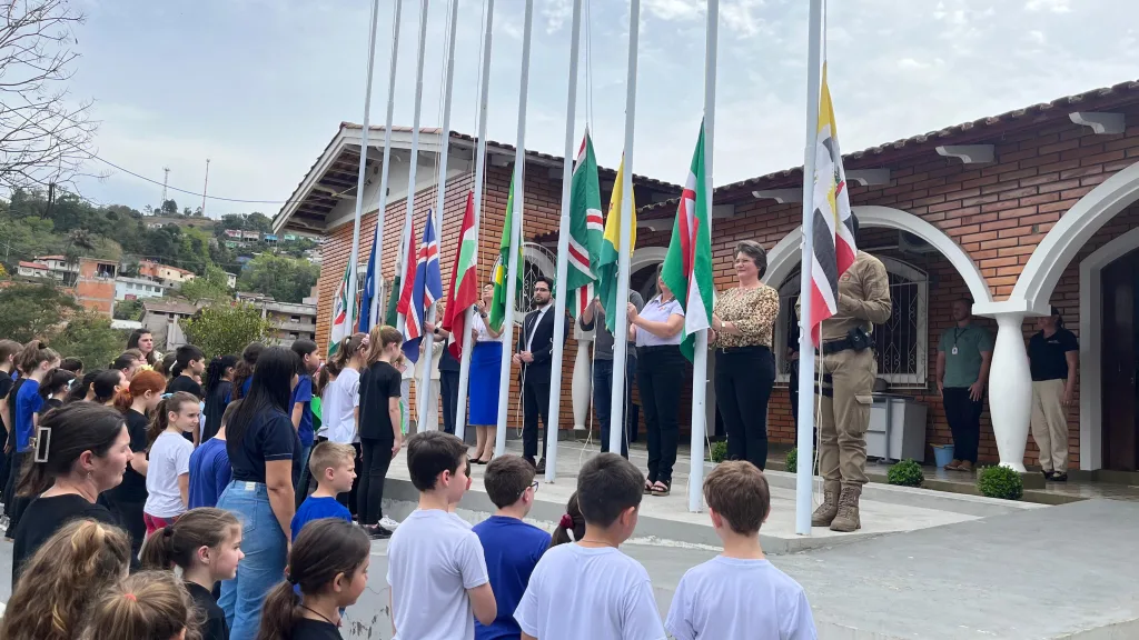 Hasteamento das bandeiras do Brasil, de Santa Catarina e dos oito municípios que compõem a CRE de Seara