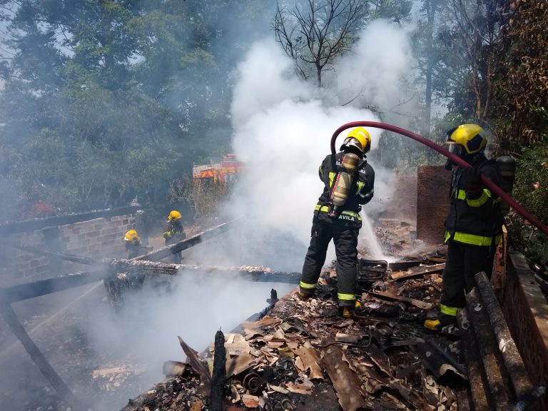 Ao chegar ao local, os bombeiros constataram que o fogo já havia consumido completamente a casa, que tinha aproximadamente 80 metros quadrados.
