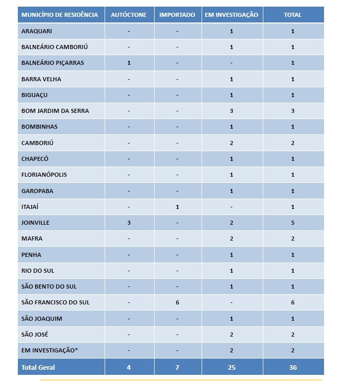 O caso positivo foi de um jovem de 24 anos, morador do bairro Efapi. Segundo o gerente de Vigilância em Saúde de Chapecó, Rodrigo Momoli, ele se infectou na primeira semana de julho e teve sintomas gripais leves, mas já está recuperado. Ainda está em investigação se a infecção foi comunitária ou importada.