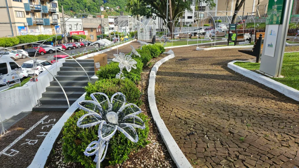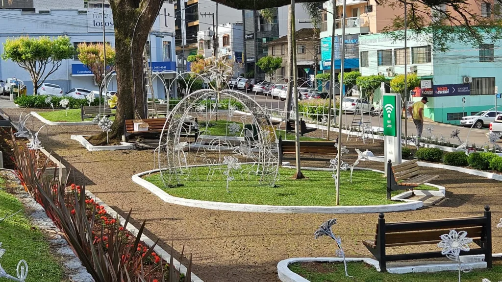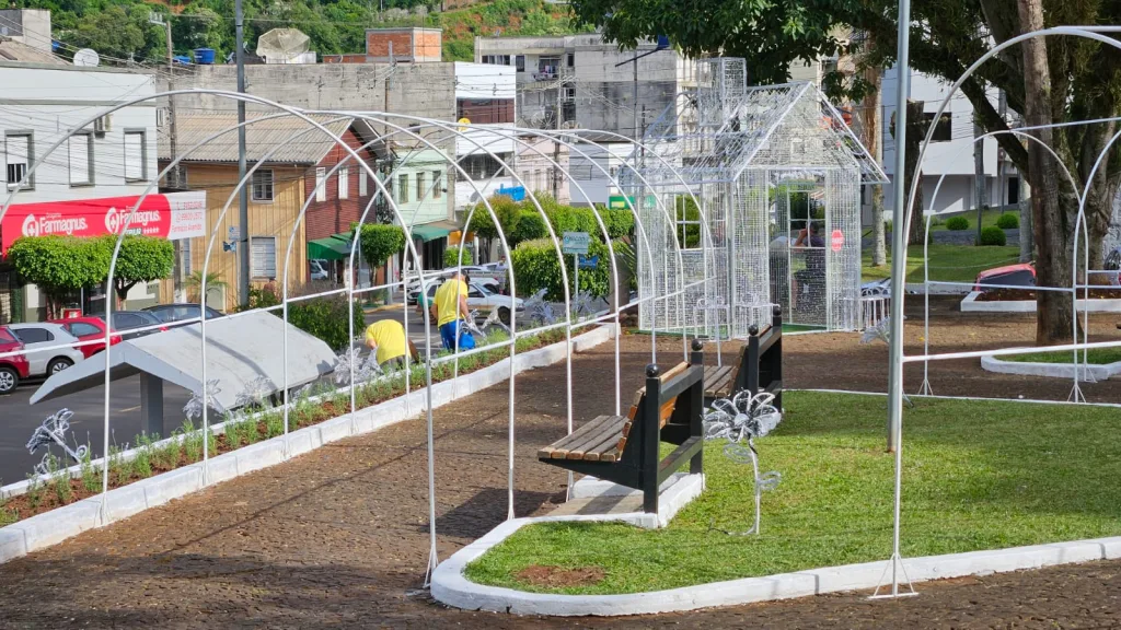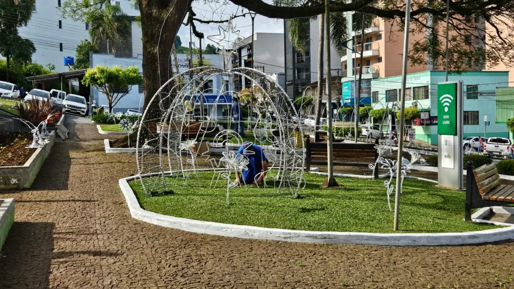 A Prefeitura de Seara iniciou nesta semana a colocação da iluminação e decoração de Natal na Praça Dr. Harry Quadros de Oliveira, no centro da cidade.