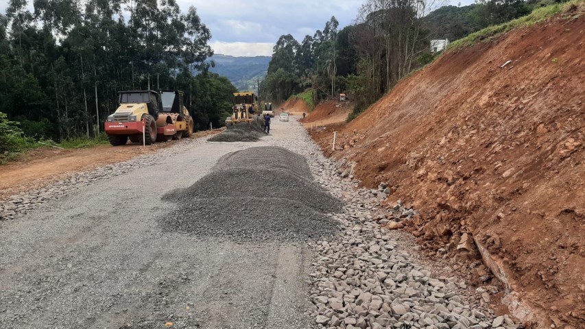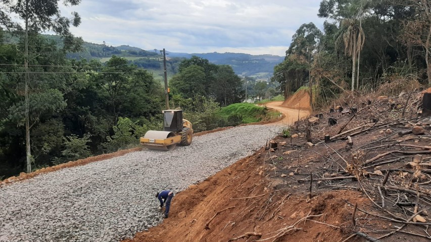 Seguem os trabalhos para a pavimentação asfáltica da estrada que liga a SC 283 em Seara, próximo ao Silo da Copérdia, até Canhada Grande, interior de Arabutã.