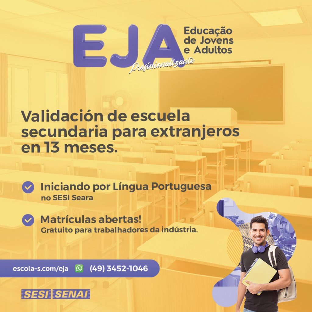 O SESI/SENAI de Seara está ofertando o curso de língua portuguesa para estrangeiros. O curso é gratuito e será realizado em parceria com a Secretaria de Educação e Secretaria de Assistência Social do município. “Estamos propondo uma educação de jovens e adultos para estrangeiros. Para desenvolver as competências voltadas à esse ensino, nós iniciaremos com a área de conhecimento de linguagens adentrando para as demais durante o curso”, comenta a coordenadora de Operações SESI/SENAI Seara, Ivana Cerutti.