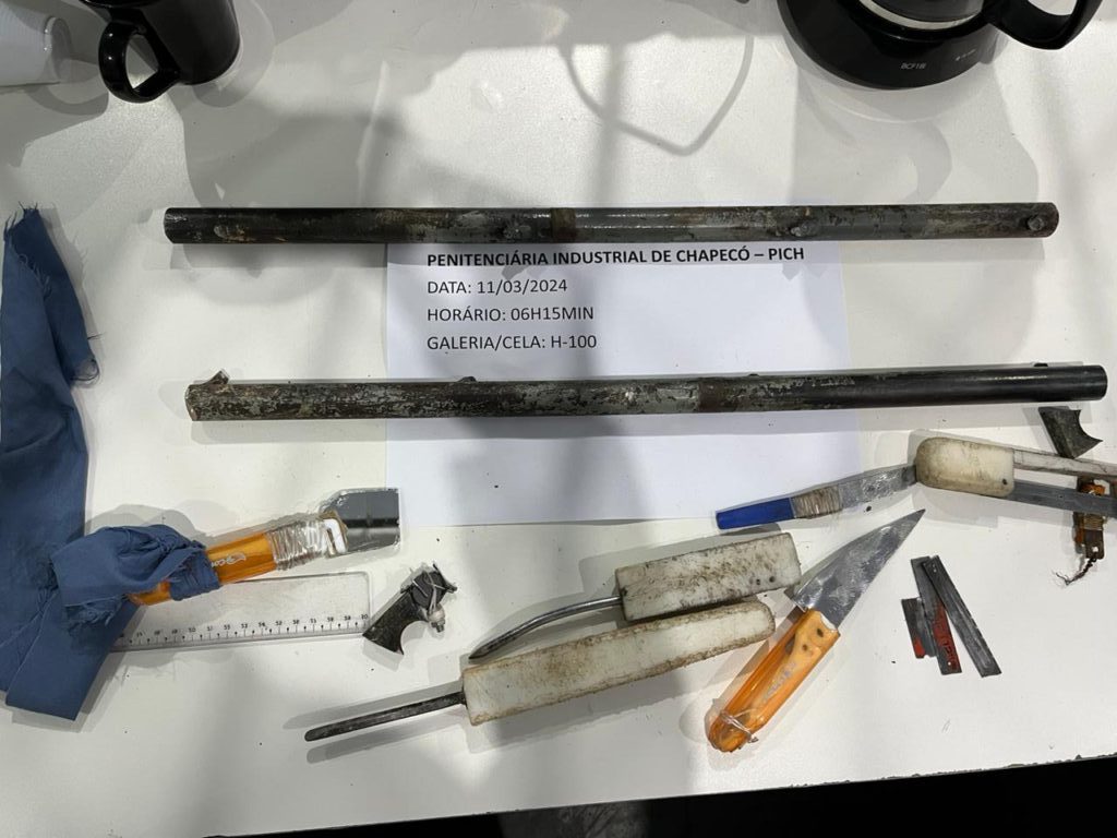 Presos da Penitenciária Industrial de Chapecó tentaram fugir na manhã desta segunda-feira, 11, e deixaram dois policiais penais feridos. O fato ocorreu por volta das 06h15, durante a distribuição do café da manhã. Segundo relatos oficiais, os internos da galeria H, cela 100, serraram a grade metálica da cela e fizeram um buraco no muro de tijolos, o que permitiu a fuga.
