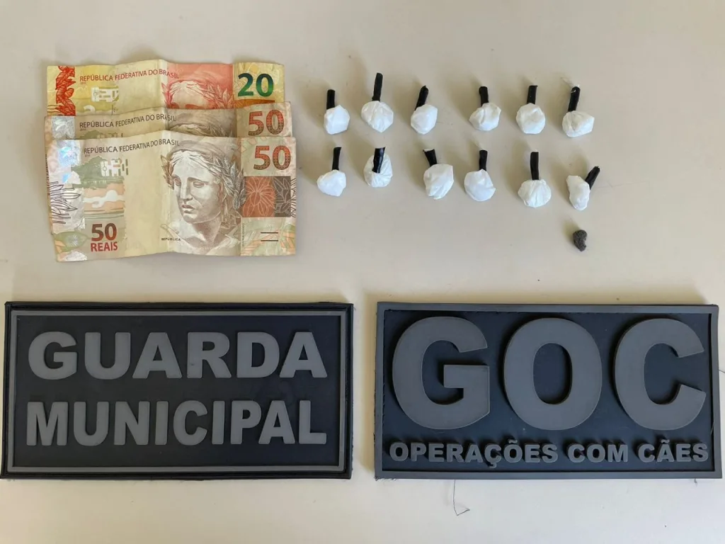 Segundo os agentes, dois indivíduos, ao avistarem a viatura, tentaram se esconder em uma área de mata, levantando suspeitas. A guarnição deu voz de parada e solicitou reforço de equipes próximas. Após a abordagem, um dos suspeitos, um homem de 32 anos, foi flagrado com 12 porções de substância semelhante à cocaína e R$ 120 em espécie, distribuídos em duas notas de R$ 50 e uma de R$ 20. Ele foi detido e encaminhado à Delegacia de Polícia para os procedimentos legais.