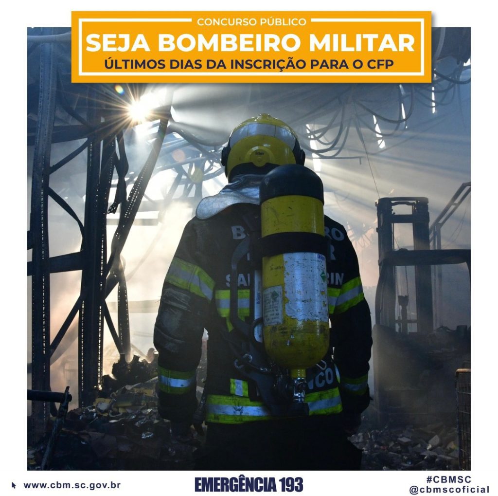 Termina nesta quinta-feira, dia 05, para a inscrição no Concurso Público para o Curso de Formação de Praças (CFP) do Corpo de Bombeiros Militar de Santa Catarina (CBMSC). São 250 vagas.