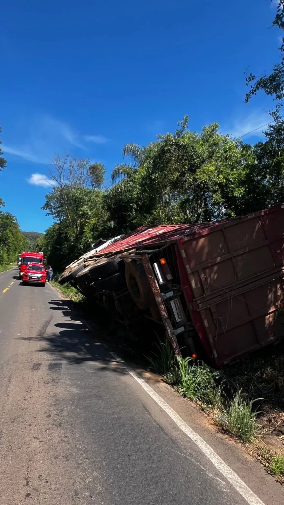 Um acidente de trânsito foi registrado no começo da tarde desta segunda-feira, 10 de novembro, na SC-155, acesso a Xavantina. Foi uma saída de pista com tombamento de caminhão próximo ao Campo dos Veteranos.