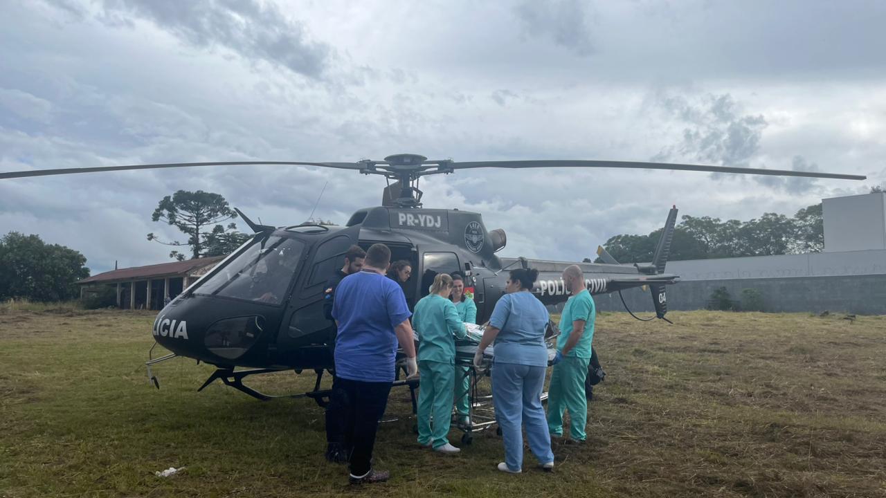 Após os procedimentos, o homem foi transportado de helicóptero até o hospital em São Miguel do Oeste, onde recebeu atendimento especializado.