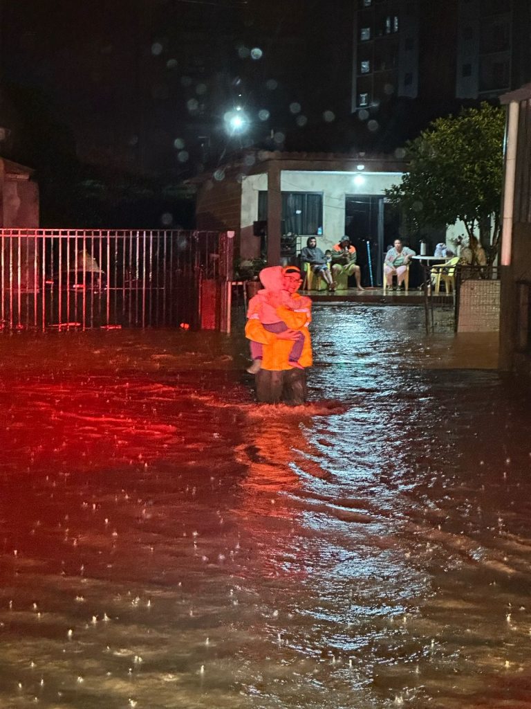 Diversos bairros e a região central foram atingidos pelos alagamentos provocados pelas fortes chuvas. Cerca de dez pessoas deixaram suas casas, inclusive um cadeirante. Uma ambulância e a polícia deram suporte ao trabalho, que contou com a ajuda de barcos.