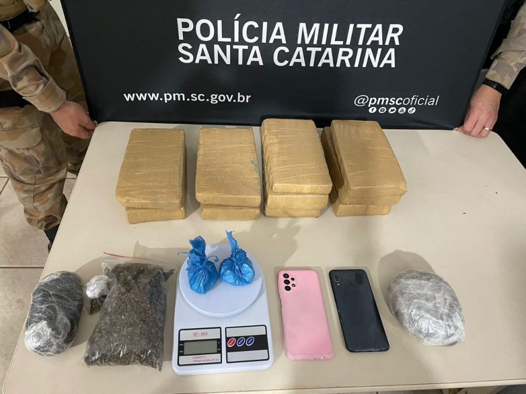 Segundo a PM, um homem e duas mulheres foram presos. Também foram apreendidos 10,158 kg de maconha (R$ 101.580,00); 109 gramas de cocaína (R$ 5.450,00); 406 gramas de skank (R$ 20.300,00). O prejuízo ao crime foi de R$ 127.530,00.