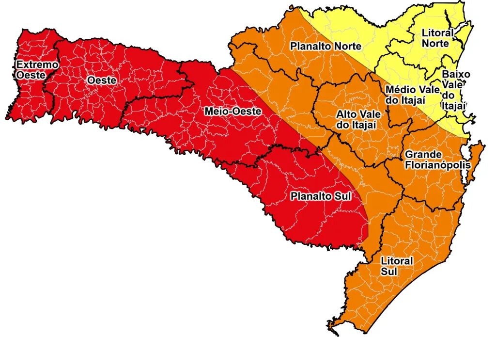 Entre a madrugada e manhã de domingo, as áreas mais atingidas devem ser o Grande Oeste, Planalto Sul e Litoral Sul. Ao longo da tarde e noite, os temporais avançam para as demais regiões, atingindo com maior intensidade o Vale do Itajaí, Planalto Norte, Litoral Norte e parte da Grande Florianópolis. A Defesa Civil alerta para risco muito alto de destelhamentos, queda de galhos e árvores, danos na rede elétrica, alagamentos e enxurradas em pontos isolados.